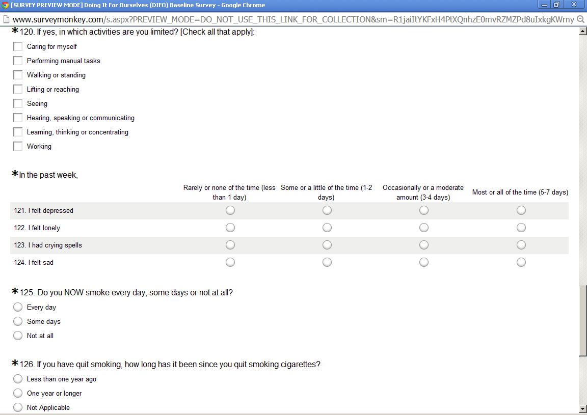 Baseline Survey (DIFO) SurveyMonkey Screenshots 8/26/2013