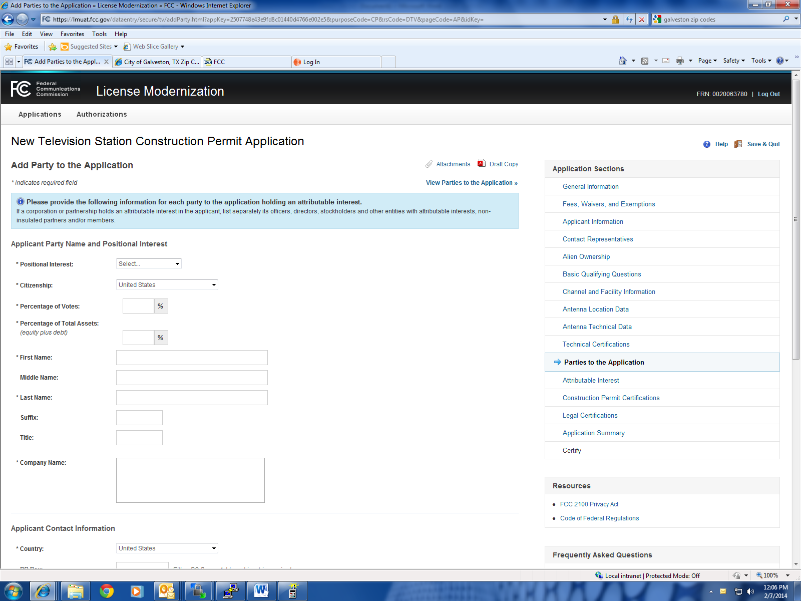 DO NOT SEND COMPLETED APPLICATIONS TO THIS ADDRESS. Remember - you are not required to respond to a collection of information sponsored by the Federal government, and the government may not conduct or sponsor this collection, unless it displays a currently valid OMB control number or if we fail to provide you with this notice. This collection has been assigned an OMB control number of 3060-0027.