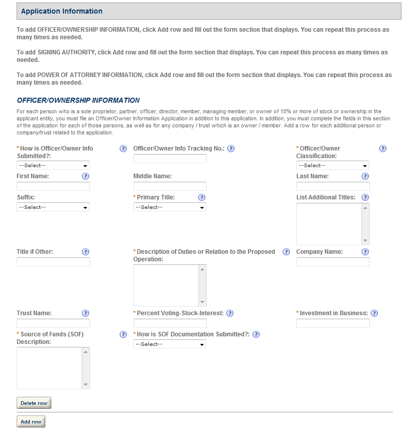 The following screens depict what a typical industry member would need to fill out for completing the New Winery application which is a collection of the following OMB forms: