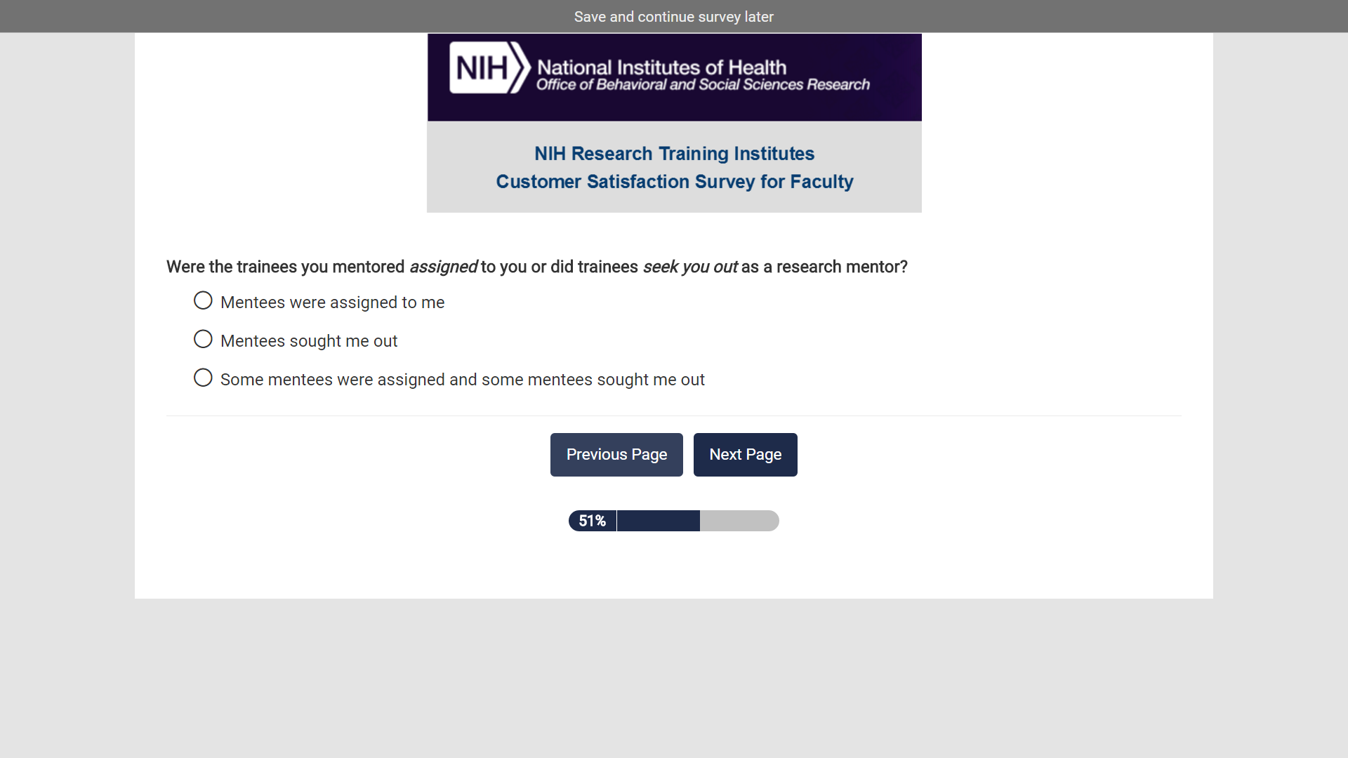 If the respondent selects “yes” instructions will pipe in the institute and year so that it will read “Please refer to your experience serving as a faculty member for the [Institute] in [Year] for the remainder of this survey”.
