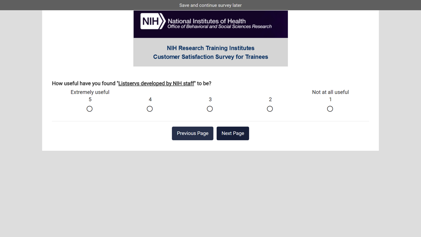 Screen Shots: SRTI Trainee Survey