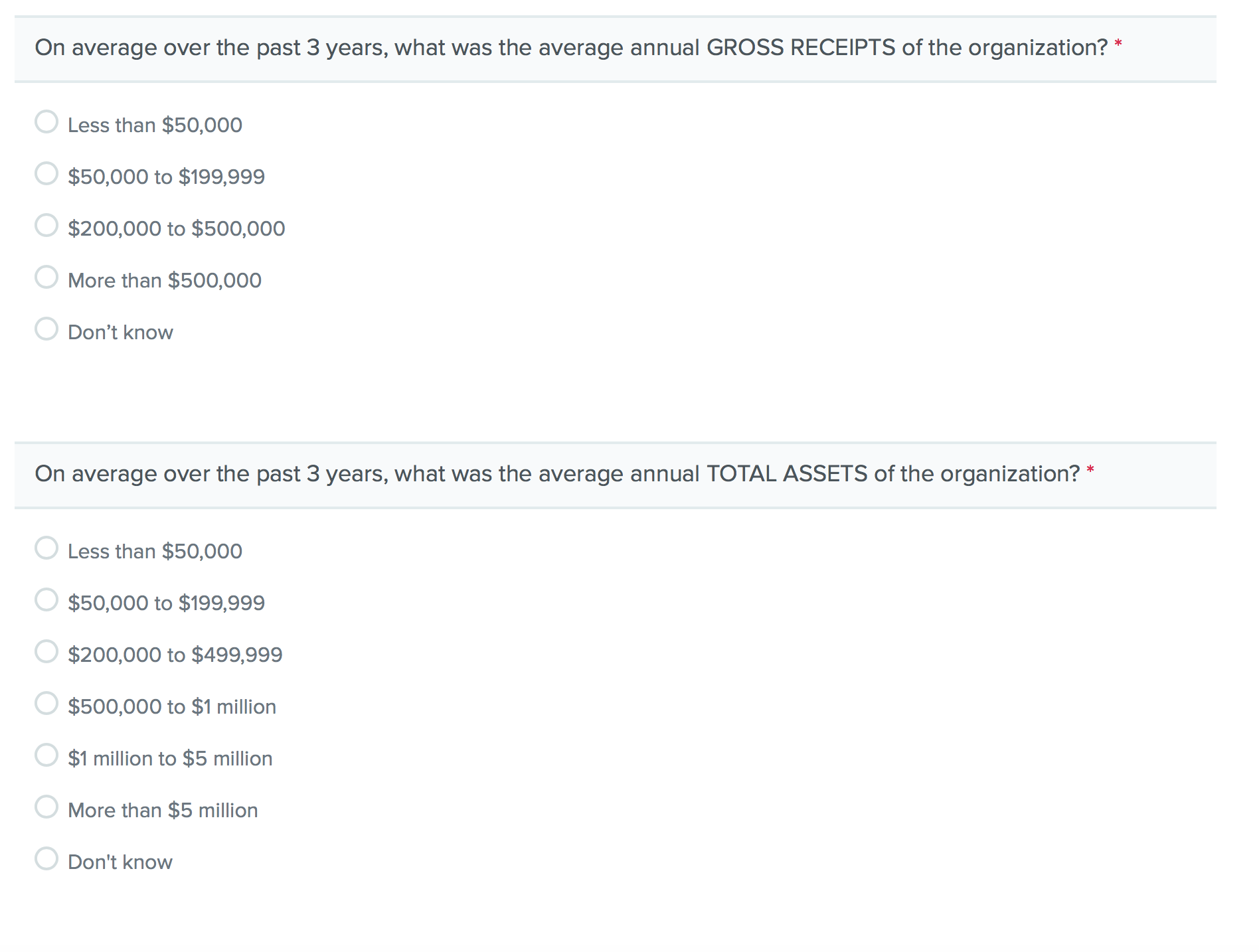 On average over the past 3 years, what was the average annual GROSS RECEIPTS of the organization? *