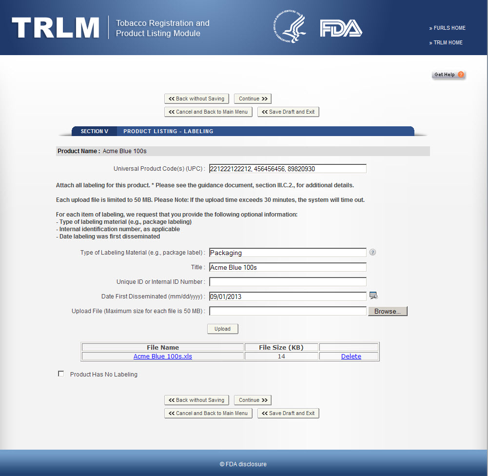 Tobacco Product Establishment Renewal Registration and Listing