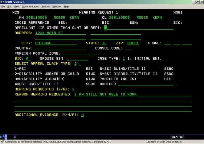 Second level of an appeal is a Hearing. Below are Hearing screens