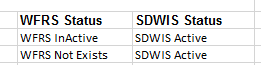 In this case, a system is listed in the first section of the System tab with either “WFRS InActive” or “WFRS Not Exists” in the WFRS Status column and “SDWIS Active” in the SDWIS Status column. If the system is active and the SDWIS database correct, that water system must be created in WFRS.