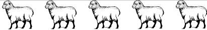 In a line of five toy sheep facing the same direction, Indigo answers the question, “Point to the first sheep in line.” |