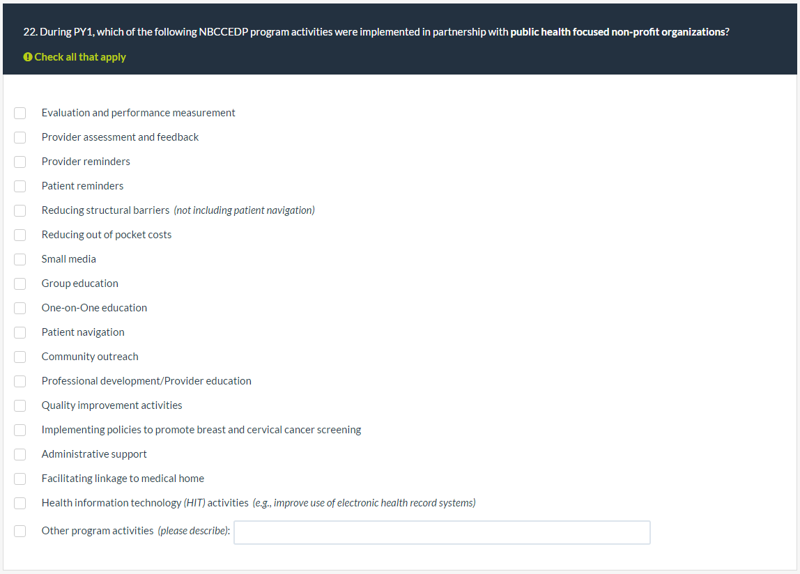 Attachment 6 – NBCCEDP Annual Grantee Survey (Screenshots) Page 3 of 3