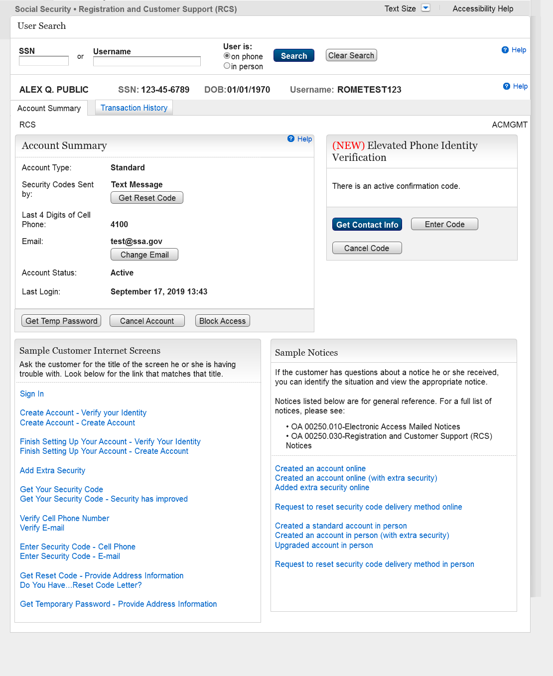 21. Search Results with No Active Account, In-Person SSN with Active Code 16