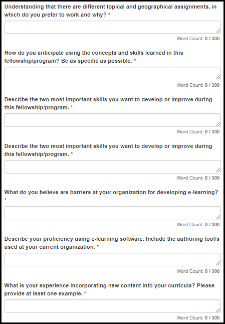 “Yes” indicates that the fellowship collects the information and that applicants are required to submit this information.