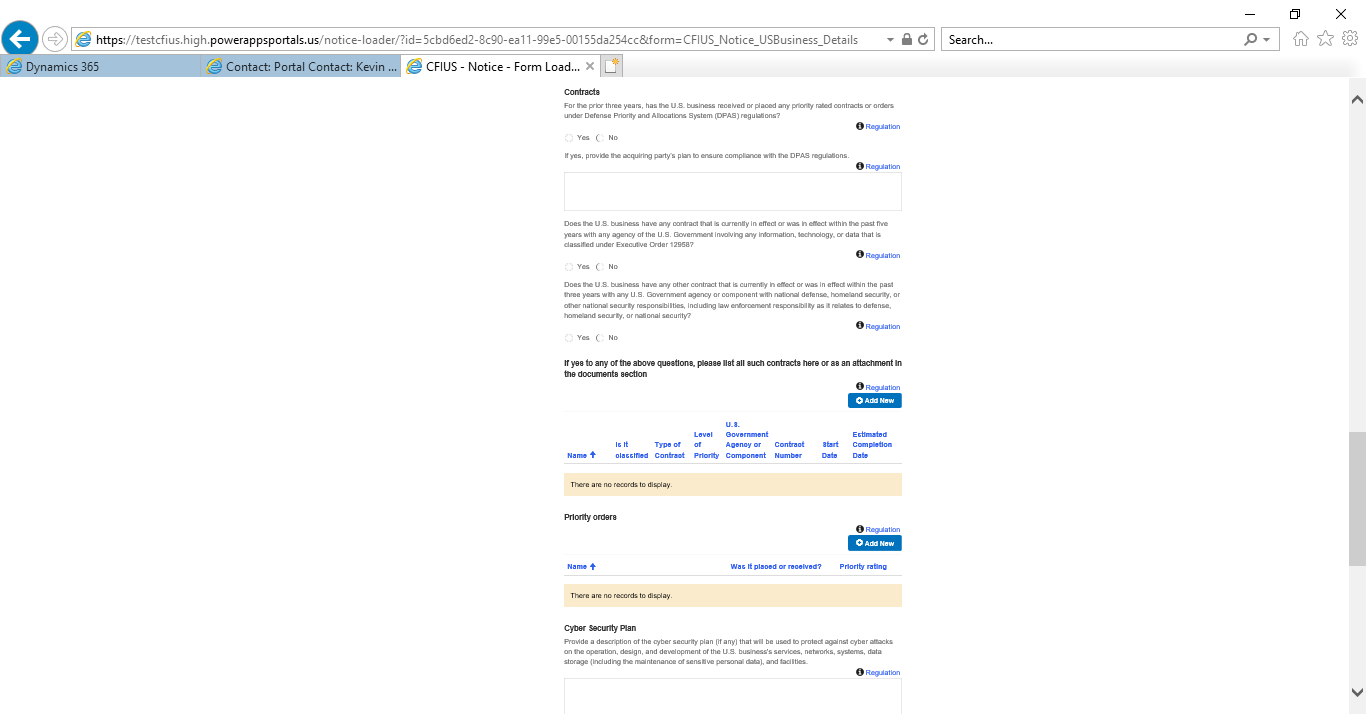 Section 3: CFIUS Public Portal Screenshots – this section contains screen shots of the Real Estate Declaration form in the Public Portal for the new CFIUS Case Management System. Compare the collection of information between the Real Estate Declaration in Section 1 and this form.