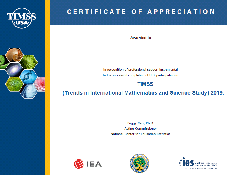 Collection of these data is not possible without the participation of selected school districts and schools. By participating in the study, you are providing trend information about student achievement in mathematics and science relative to other countries, as well as indicators that show how this achievement relates to demographic and curricular, school, teacher, and student factors that provide the educational context for achievement.