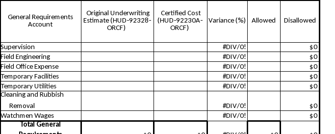 <<Provide narrative description to identify basis for costs, reasons not included in original firm commitment application underwriting, and justification for allowing or disallowing additional costs. Variances above 10% between underwriting and certified amount should be explained.>>