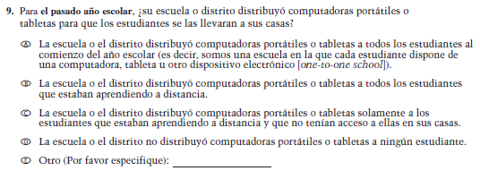 The stem of this item was revised from "when your school was closed last school year" to "for last school year" to remove references to school closures. |