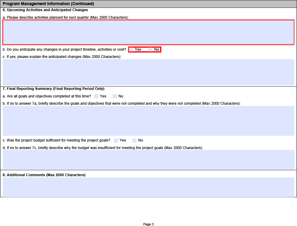 FNS‐908 Performance Progress Report (PPR) – For Reference Only (Continued)
