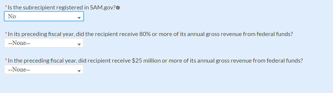Figure 45 Additional SAM.gov questions for Subrecipients, Contractors, and Beneficiaries 40