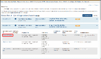 Figure 10 Status Screen and List of Applications/Grants Links 24