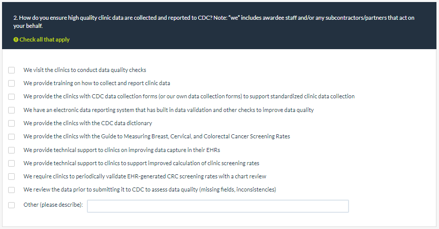ATTACHMENT 4a: CRCCP Annual Grantee Survey (Screenshots)