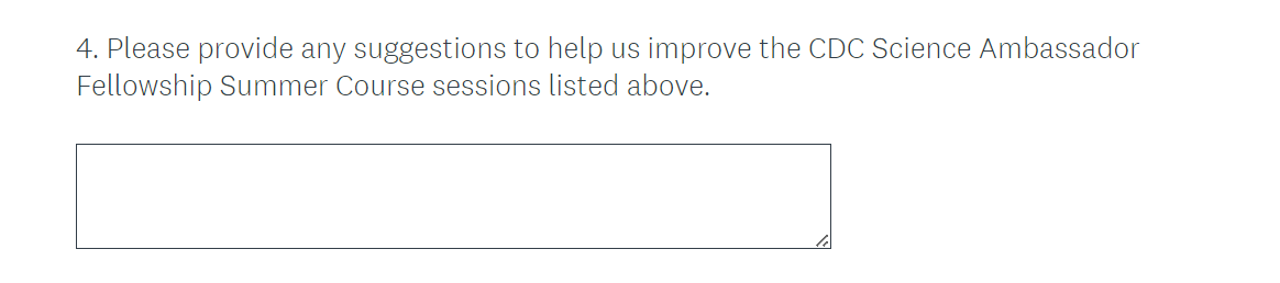 Attachment 2. 2024 CDC Science Ambassador Fellowship Summer Course Survey Screenshots