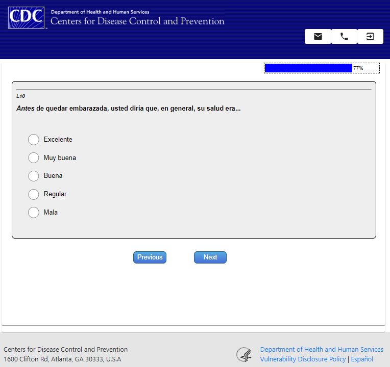 Attachment 10j – PRAMS Livebirth Phase 9 Standard Web Module - Spanish