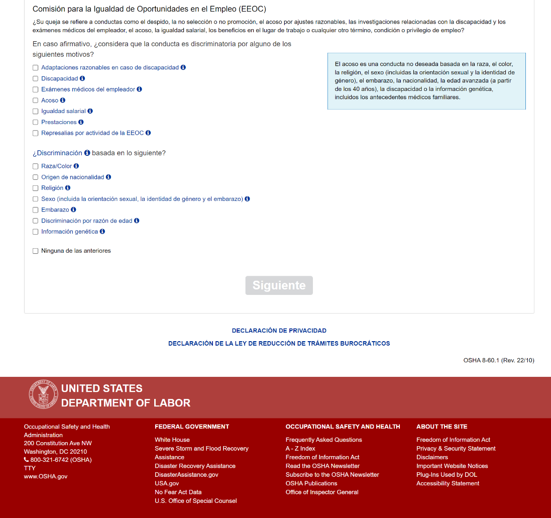 OSHA 8-60.1 Formulario Electronico de la OSHA para Presentar Queja C