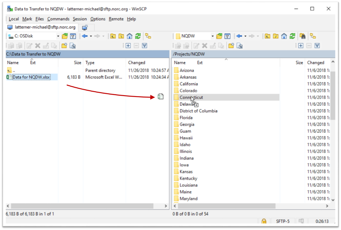This is where you will save your files. Please note that we have also provided your folder path (i.e. /Projects/NQDW/[State name] in the SFTP confirmation emails.