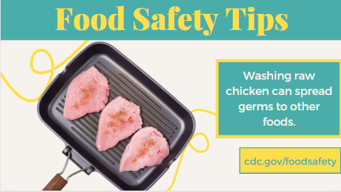 SM post and potential website content – want to see which people prefer and which is most likely to cause behavior change, 1) cook to kill germs, 2) washing spreads germs, 3) paper towel alternative, 4) safe way to wash chicken |