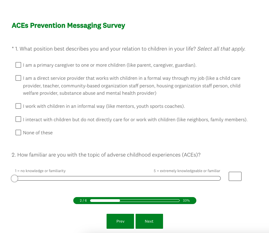 Attachment 2: ACEs Survey Screenshots