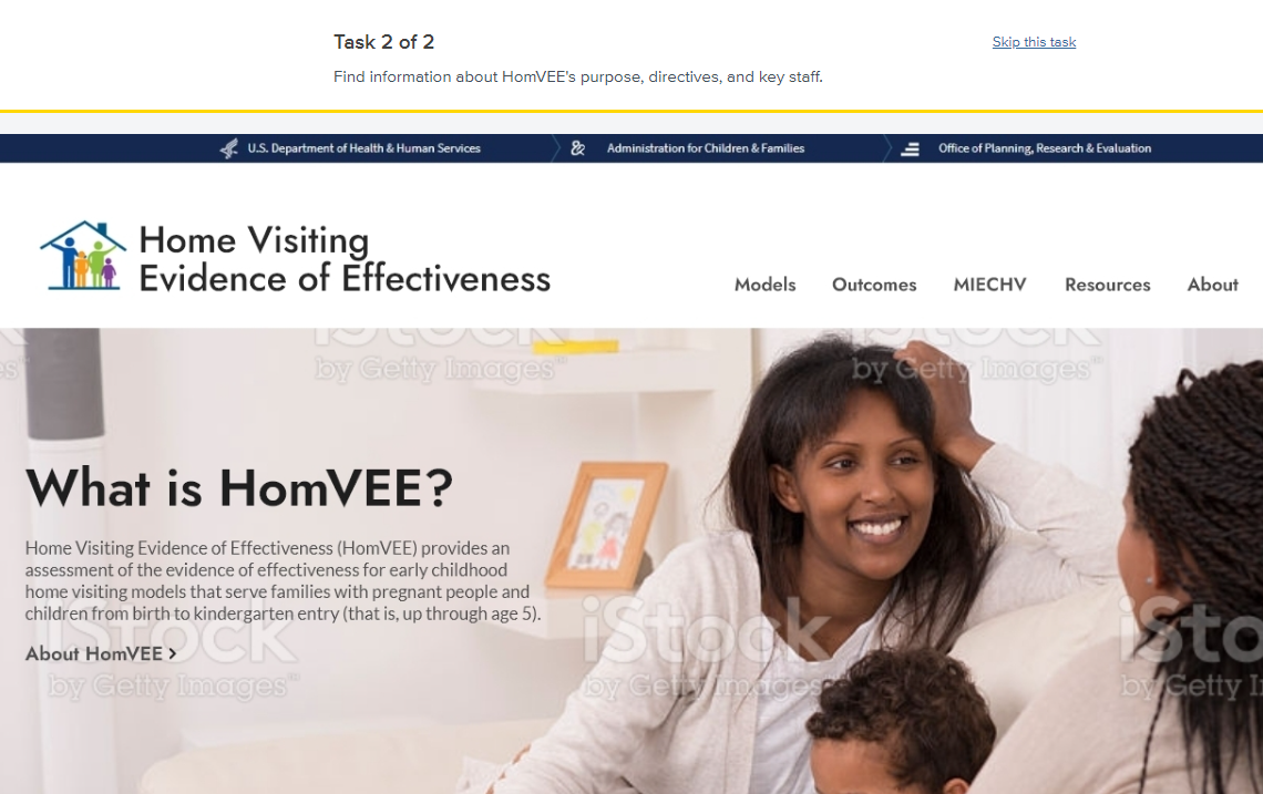Over the next year, ACF will be redesigning the HomVEE website with a new look and new features. As part of a site redesign, we are seeking users familiar with HomVEE or the early childhood home visiting field and willing to participate in a brief activity to help us uncover challenges with navigating the website.