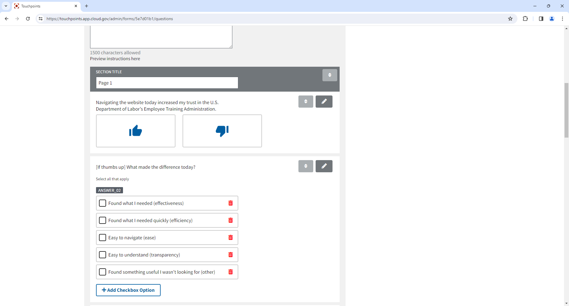 Screen capture from TouchPoints survey instrument