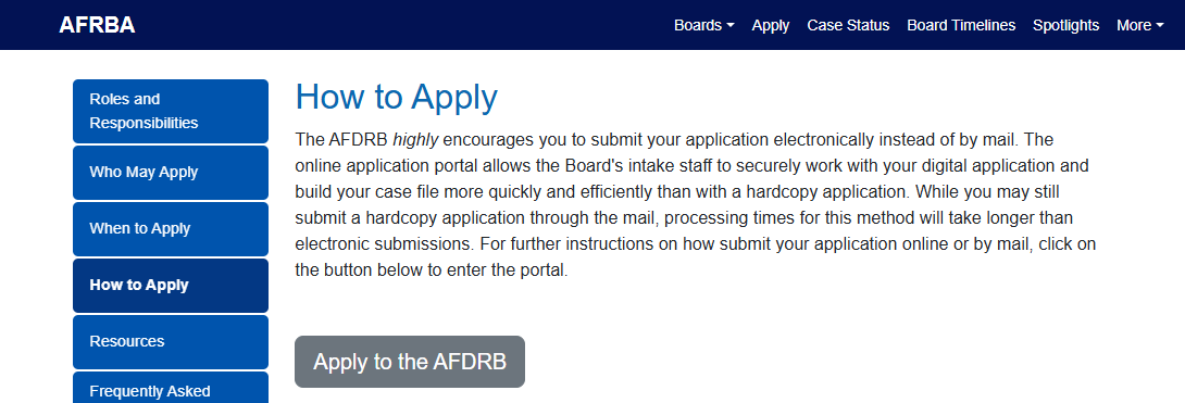 Air Force Discharge Review Board Portal Application for DD Form 293