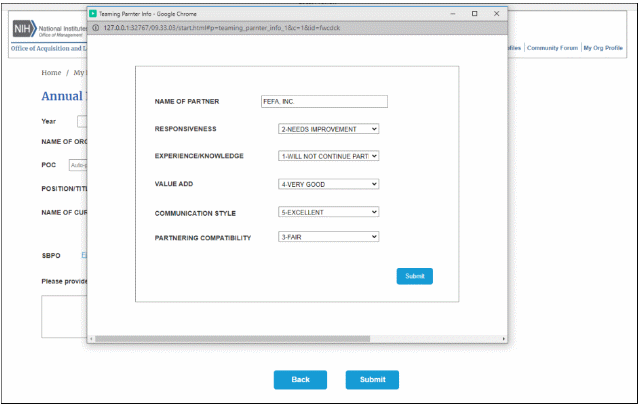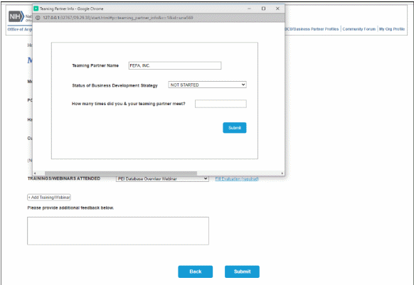 Input organizational data to create a profile accessible to potential teaming partners and NIH staff.