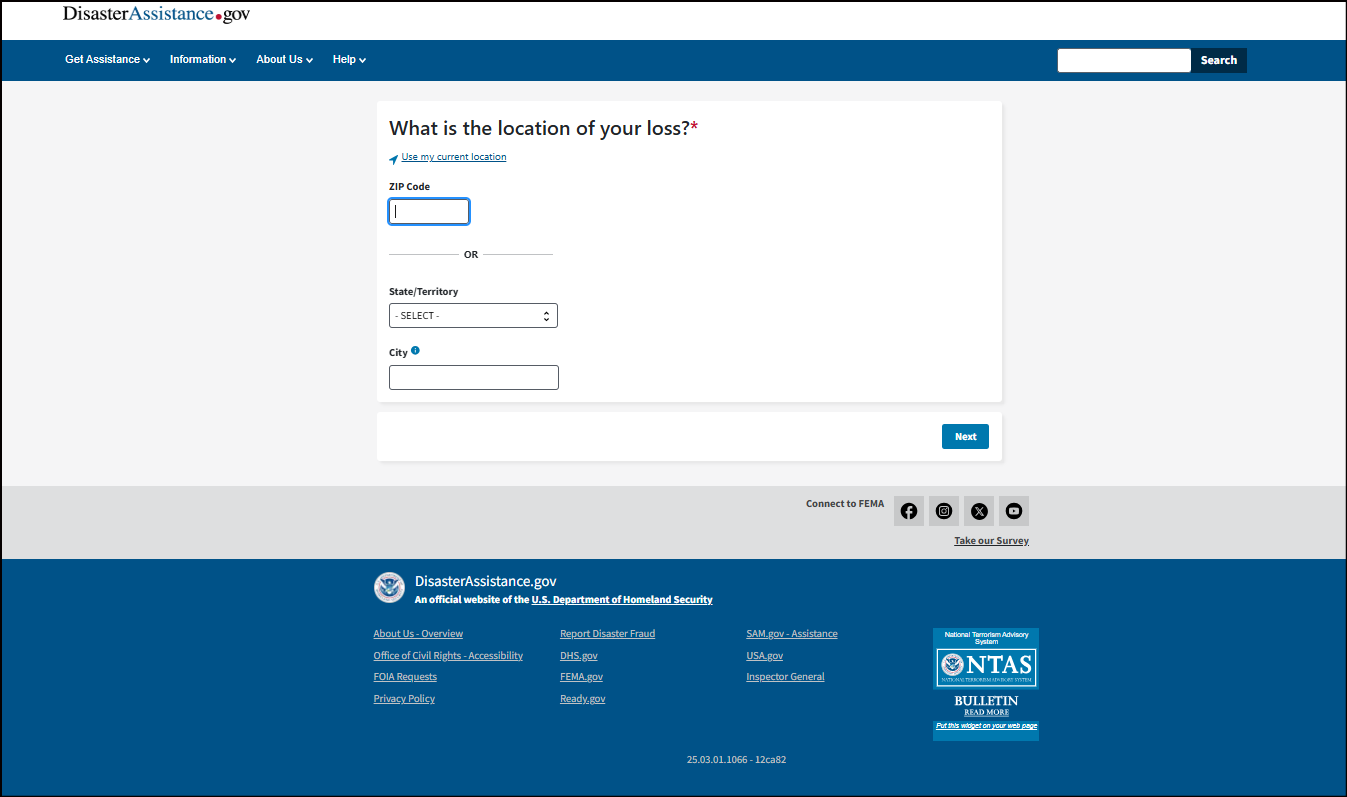 This may be your home address, where your vehicle was damaged, where you sustained an injury from the disaster, or where your loved one passed away from the disaster. To get assistance, your damaged property or where the loss occurred must be in a declared disaster area.