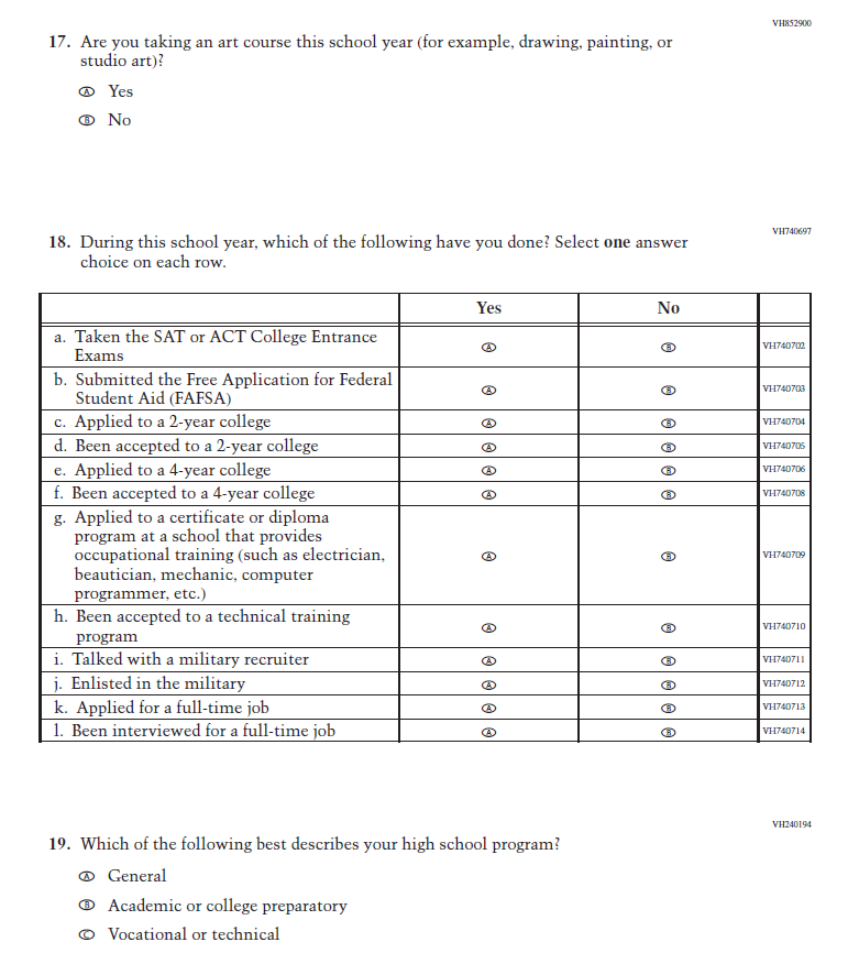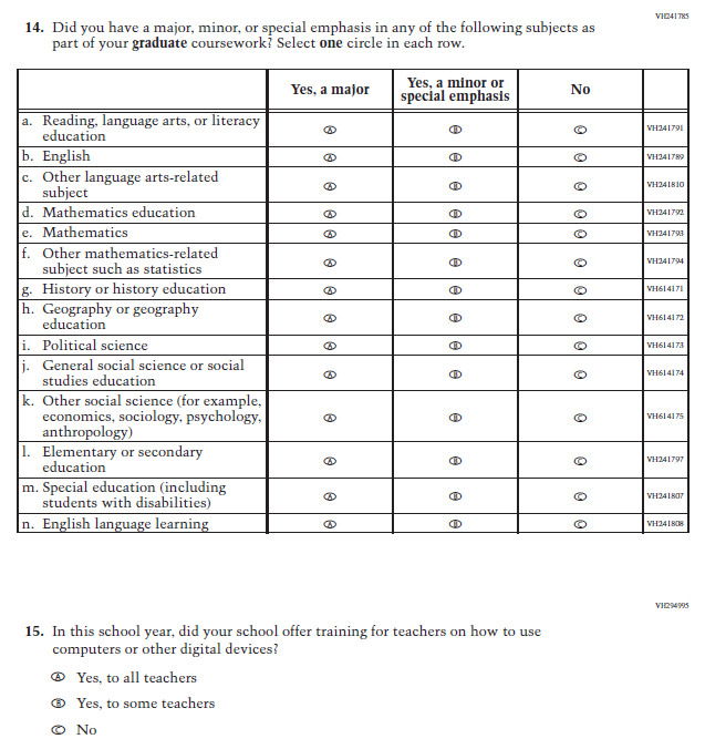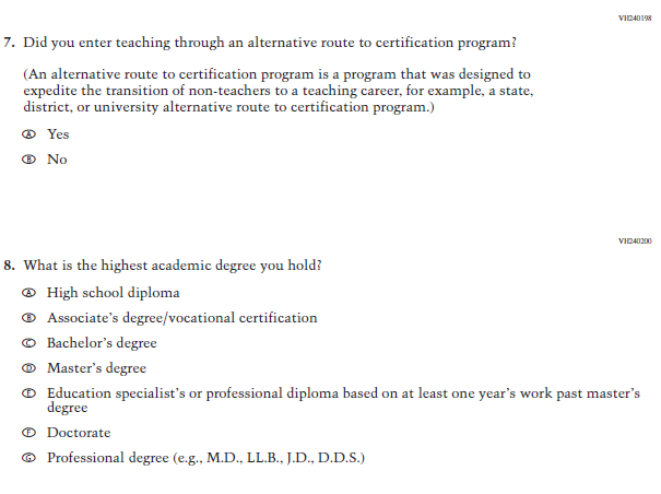 Important changes in how we collect demographic information will be reflected in the 2026 instruments when they are ready for publication and review. In March 2024, the Office of Management and Budget (OMB) announced revisions to Statistical Policy Directive No. 15: Standards for Maintaining, Collecting, and Presenting Federal Data on Race and Ethnicity (SPD 15) and published the revised SPD15 standard in the Federal Register (89 FR 22182). See Part A.7 of this package to see how NCES plans to incorporate these revisions into NAEP 2026. Further, as we were preparing this package for 30D publication, the White House issued an Executive Orders “Defending Women from Gender Ideology Extremism and Restoring Biological Truth to the Federal Government,” (January 20, 2025) and “Ending Radical and Wasteful Government DEI Programs and Preferencing,” (January 20, 2025). In compliance with these Executive Orders, the materials in this package have been modified. In addition, a full review of all items is being conducted to ensure compliance with the Executive Orders. The revised questionnaires will be included in the next Amendments to this package. No collections of this information will take place before the submission and approval of Amendment #2.
