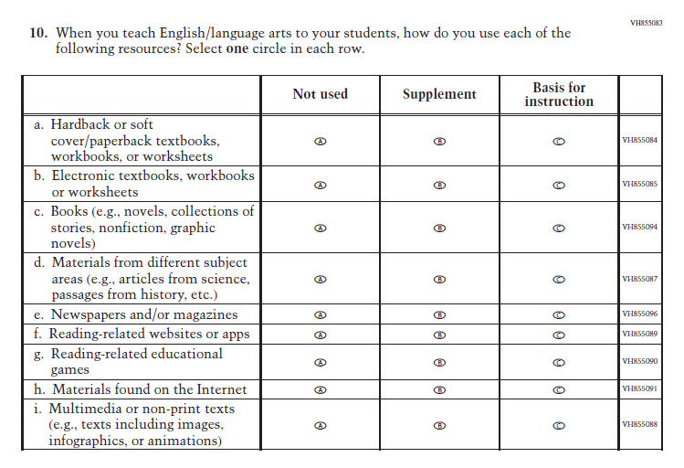 Appendix F - Item Library for NAEP 2026 Survey Questionn