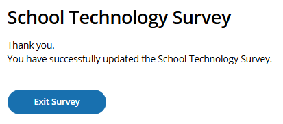 • State and TUDA Coordinators and/or district respondents may complete surveys for multiple schools within a single session or across multiple sessions anytime during the survey response window. District and state respondents select schools they wish to respond to from the School Technology Survey Manager.