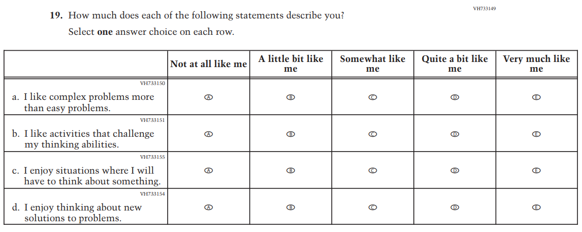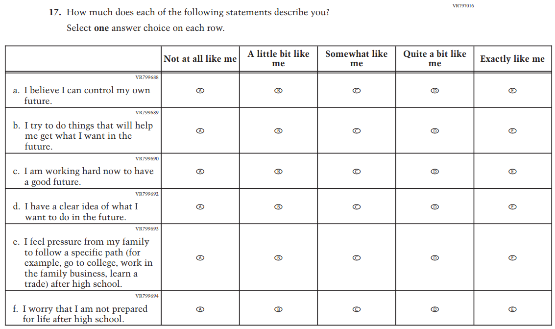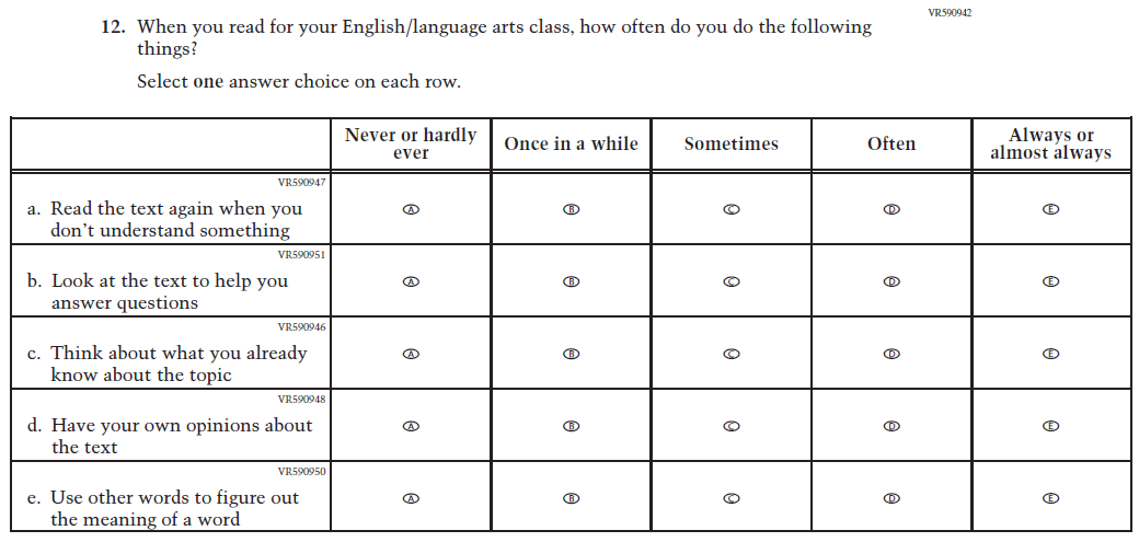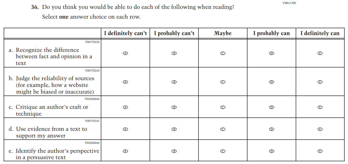 This Item was added to understand students’ experiences with using their devices to take the assessment. |