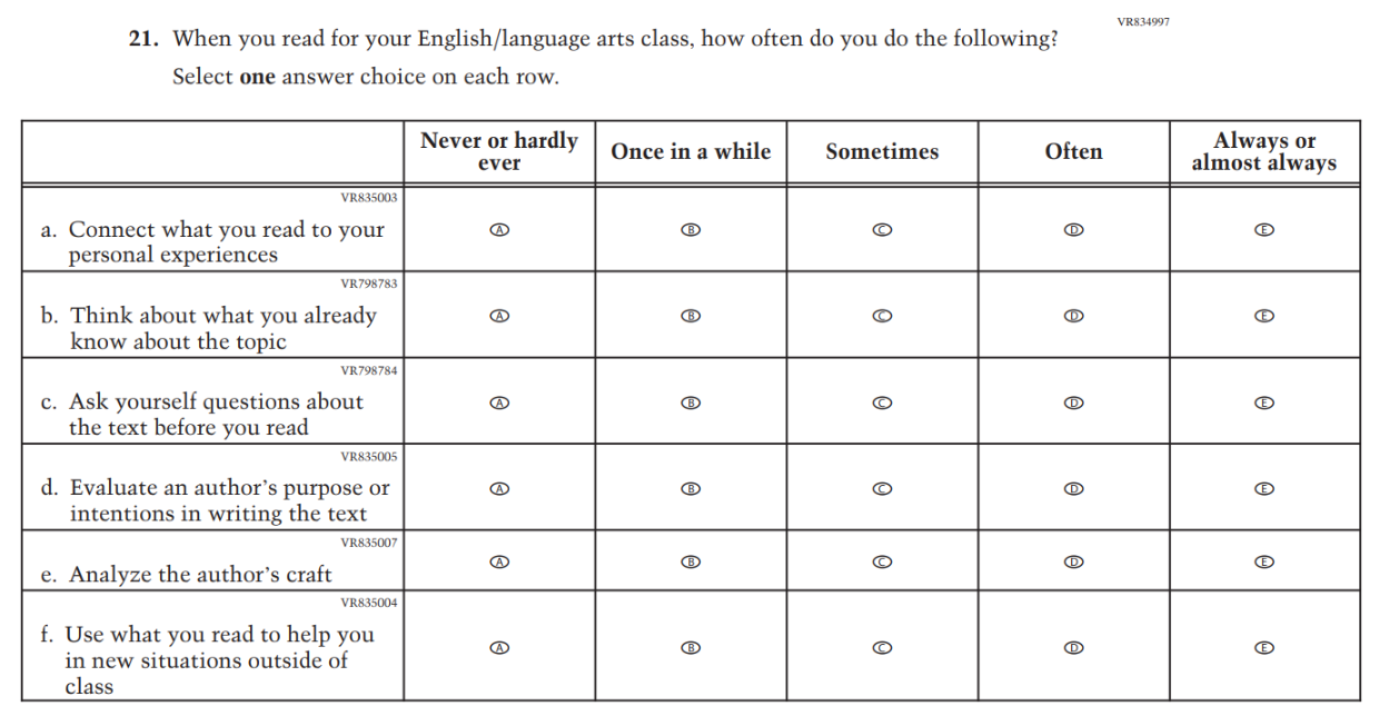 Learning Recovery Items were dropped from the 2026 NAEP Assessment. |