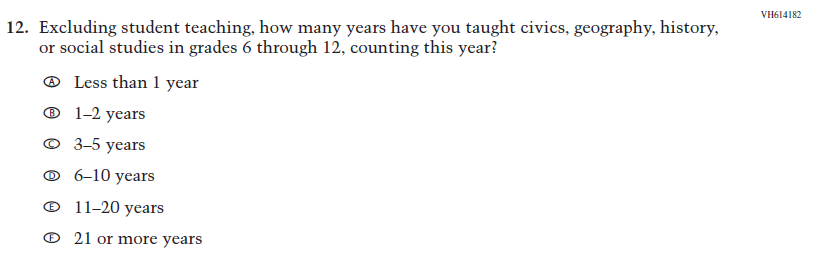 For 2026, we have aligned Inline Directions in Teacher and School Items with the Directions currently used in Student Items. This Item was revised to remove Science-related SubItems a through f and add Social Studies-related SubItems, since Science is not being administered in 2026, and Social Studies is. |