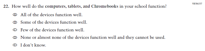 For 2026, we have aligned Inline Directions in Teacher and School Items with the Directions currently used in Student Items. The Item has been revised to focus on training in Technology Use. |