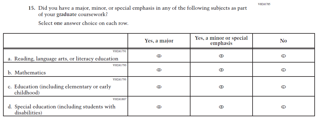 For 2026, we have aligned Inline Directions in Teacher and School Items with the Directions currently used in Student Items. The Race/ Ethnicity Items have been updated to adhere to OMB updated Statistical Policy Directive No. 15. |
