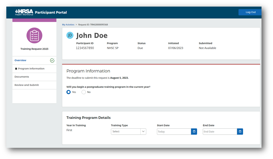 Important to Know: Participants no longer have the ability to initiate the postgraduate training request. All postgraduate training requests are now system-initiated to eligible participants on a set date. Completion of the postgraduate training request, if received via the Portal, is mandatory for all eligible participants regardless of deferment plans. Participants are able to submit the training request indicating no potential deferment.