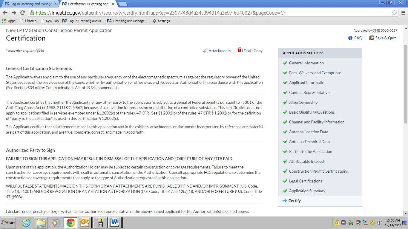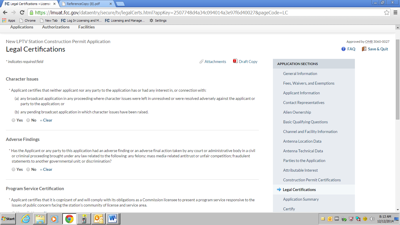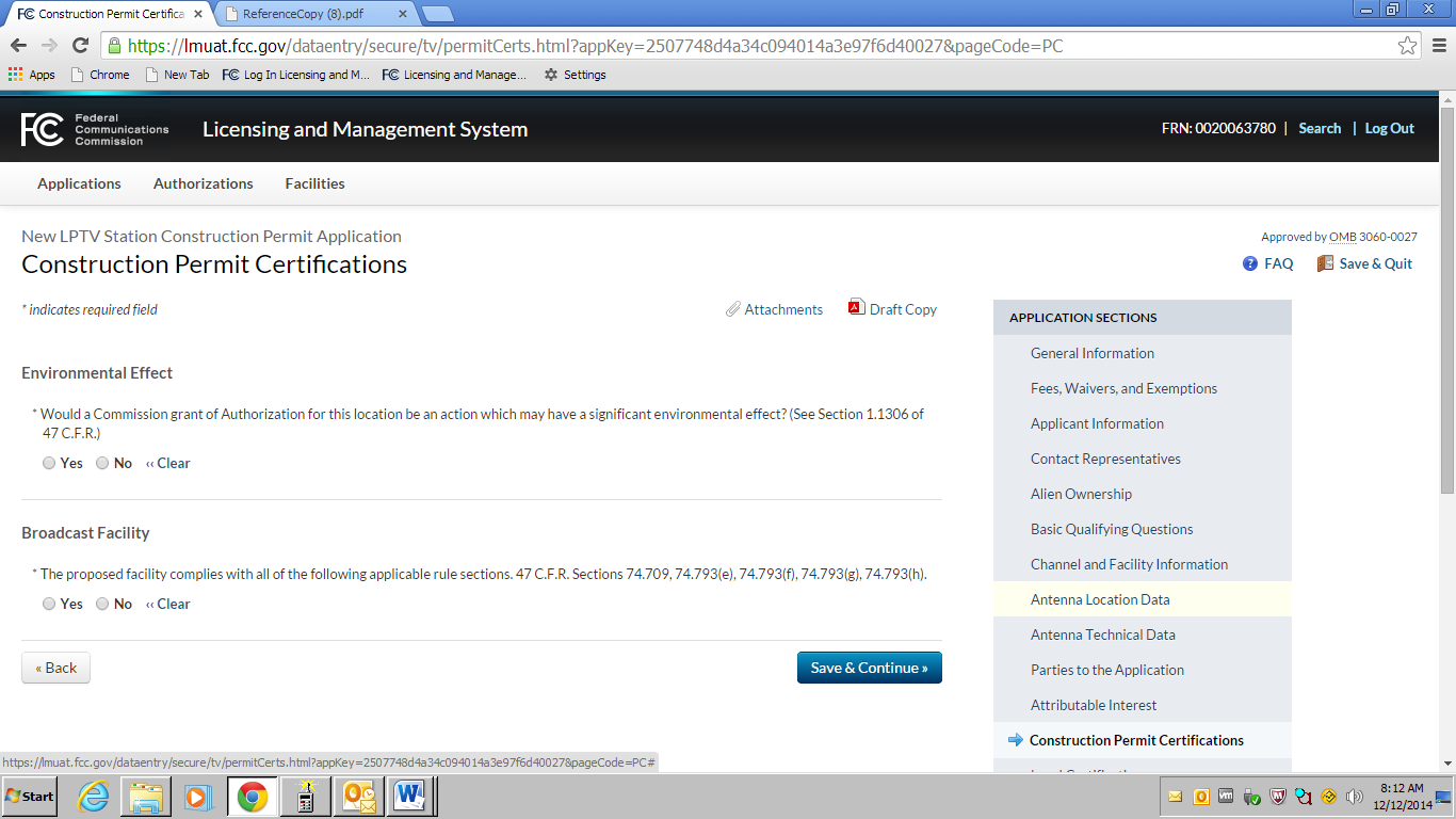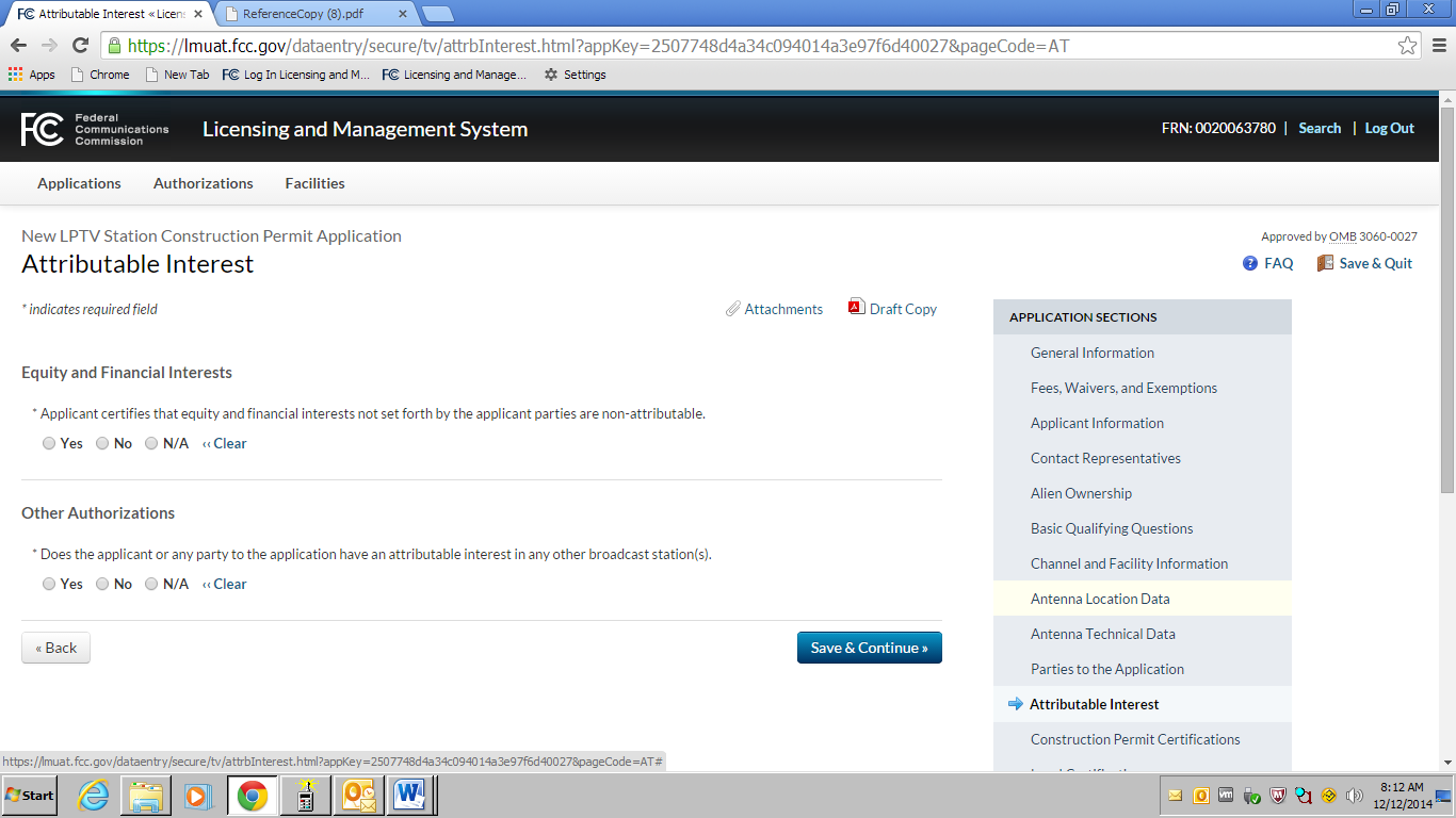 an OMB control number of 3060-0016.